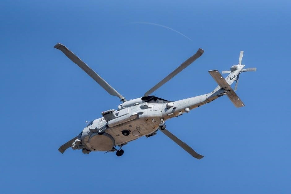 Rotorcraft manuals provide aerodynamics basics, navigation details, communication protocols, and crucial emergency equipment/survival techniques for enhanced operational awareness and safety.